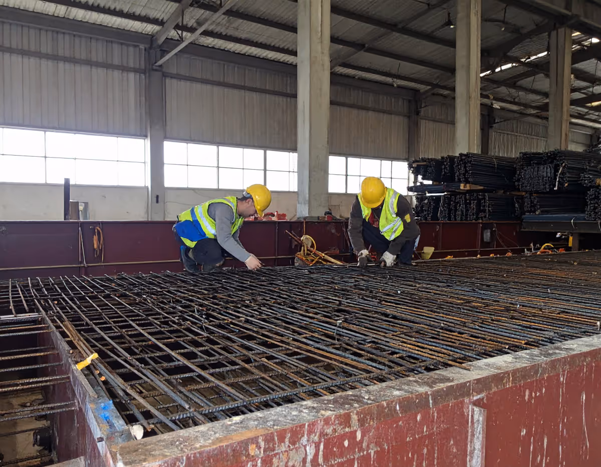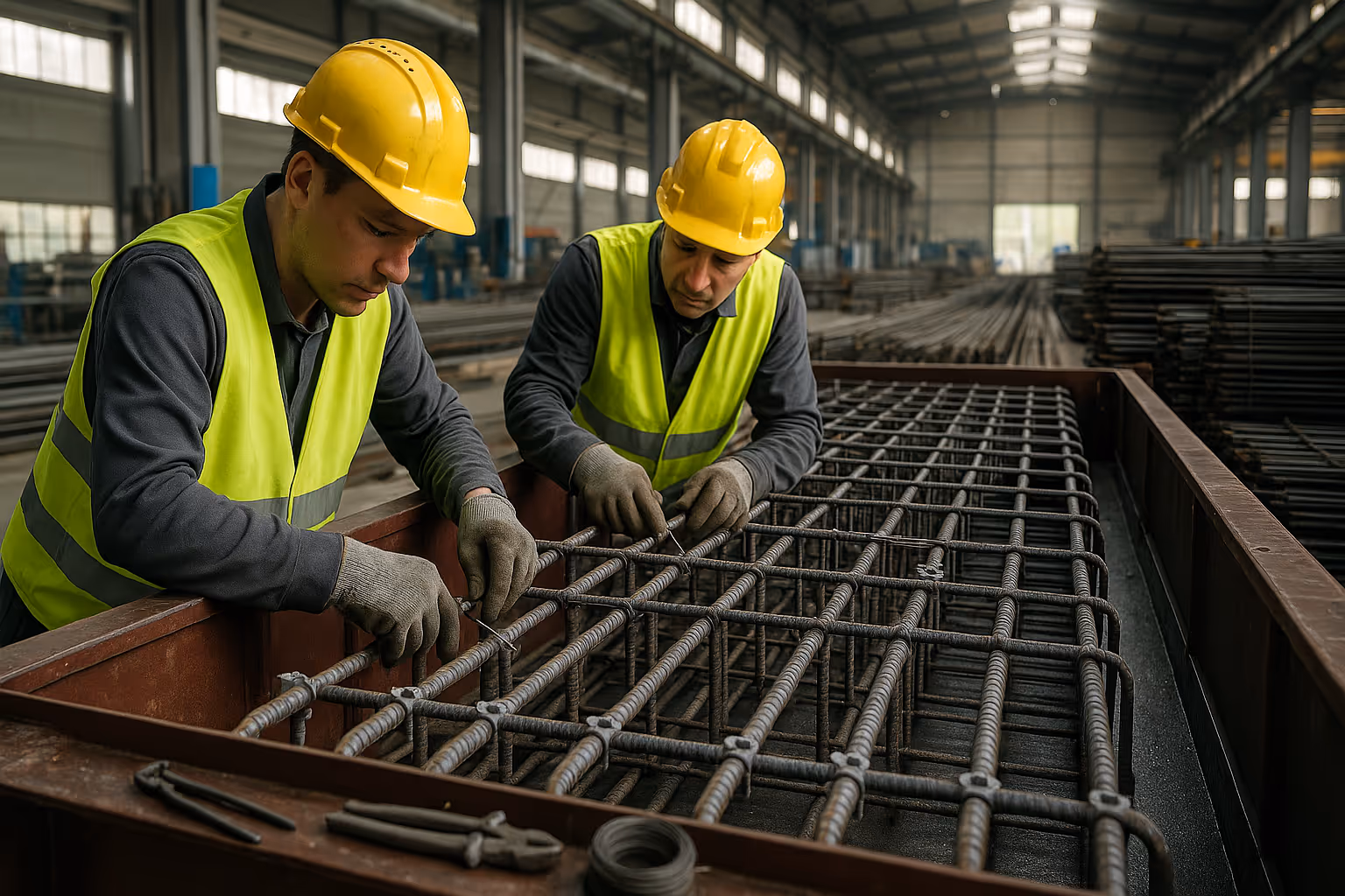 Officina ferro (taglio, piega, gabbie presagomate) e legatura armature on/off-site. Getti in casseforme dedicate con maturazione controllata e check di posa in cantiere.